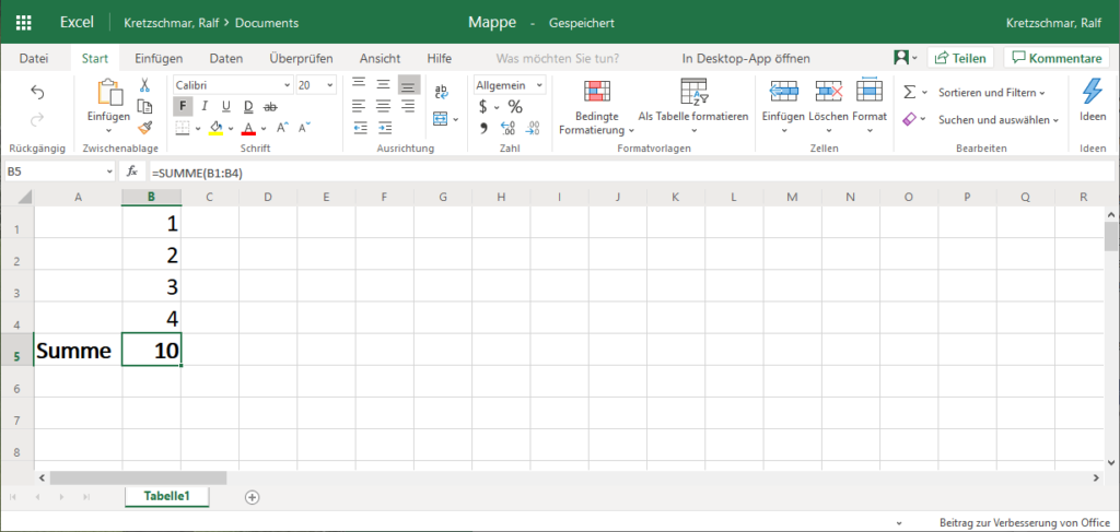 Das Hauptmenü eines typischen Tabellenkalkulationsprogramms besteht aus verschiedenen Registern (siehe Abb.1). Jedes Register ist in Gruppen unterteilt, welche mehrere Befehle enthalten.